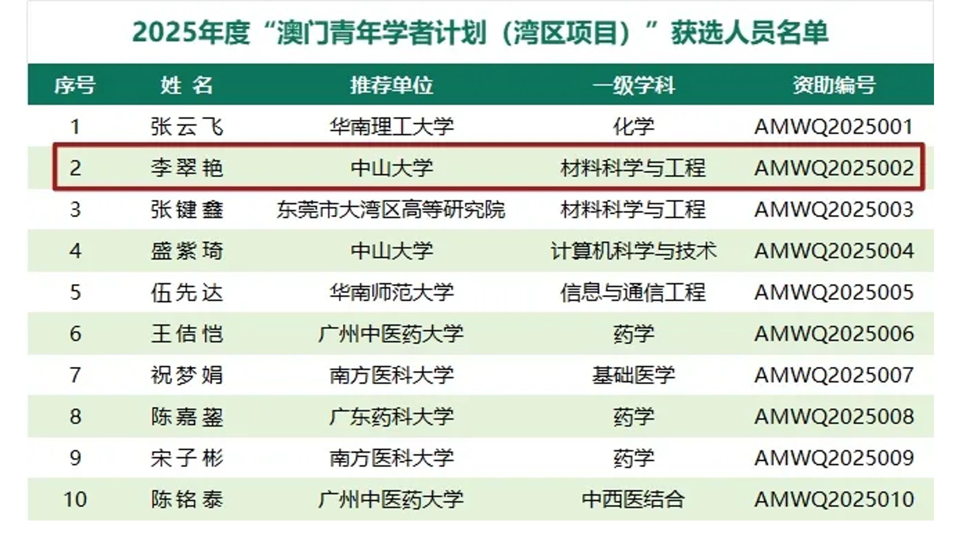 iSHES'25 International Symposium on Hydrogen and Energy Storage 2025 喜报丨我院获批2025年度国家自然科学基金项目共7项 怦然“新”动,“源”梦启航——先进能源学院欢迎2025级新同学 先进能源学院2025年全国优秀大学生夏令营顺利举行 新闻动态 2025-10-11 中山大学先进能源学院诚邀海内外青年英才申请逸仙博士后项目2025年“逸仙博士后”项目现已启动,欢迎海内外青年才俊踊跃申报!本批次截止报名时间:2025年10月25日前。 2025-10-10 iSHES'25 International Symposium on Hydrogen and Energy Storage 2025 2025-10-09 先进能源学院2025级新生见面会暨“思政第一课”顺利举行2025年9月27日下午,中山大学先进能源学院举行2025级新生见面会暨“思政第一课”。学院院长姚向东教授、党委卓义周书记、班主任韩冠群副教授、辅导员黄韬老师,以及2025级本科新生共同参会。会议由黄韬主持。 2025-09-17 喜讯|我院李翠艳博士入选“澳门青年学者计划(湾区项目)”近日,全国博士后管委会办公室公布首批“澳门青年学者计划(湾区项目)”资助人选名单,全国共10人入选。其中,我院李翠艳博士成功入选。 2025-09-12 薪火相传,育见未来 | 先进能源学院举行2025年教师节座谈表彰活动为庆祝第41个教师节,9月9日,先进能源学院在深圳校区举行教师节座谈表彰活动。学院全体教职工齐聚一堂,共同度过这一温馨且意义非凡的节日。 姚向东院长代表学院向全体教职工致以节日祝福和诚挚问候。带领全体教职工集体重温《习近平总书记致中山大学建校100周年贺信精神》,回顾了学院过去在人才培养、科学研究、社会服务等方面取得的突出成绩,感谢全体教职工为学院发展做出的贡献,勉励全体教职工坚守立德树人初心,担当为党育人、为国育才使命,在学校新百年的建设征程中贡献能源力量。 more 11 2025-10 中山大学先进能源学院诚邀海内外青年英才申请逸仙博士后项目2025年“逸仙博士后”项目现已启动,欢迎海内外青年才俊踊跃申报!本批次截止报名时间:2025年10月25日前。 10 2025-10 iSHES'25 International Symposium on Hydrogen and Energy Storage 2025 09 2025-10 先进能源学院2025级新生见面会暨“思政第一课”顺利举行2025年9月27日下午,中山大学先进能源学院举行2025级新生见面会暨“思政第一课”。学院院长姚向东教授、党委卓义周书记、班主任韩冠群副教授、辅导员黄韬老师,以及2025级本科新生共同参会。会议由黄韬主持。 17 2025-09 喜讯|我院李翠艳博士入选“澳门青年学者计划(湾区项目)”近日,全国博士后管委会办公室公布首批“澳门青年学者计划(湾区项目)”资助人选名单,全国共10人入选。其中,我院李翠艳博士成功入选。 12 2025-09 薪火相传,育见未来 | 先进能源学院举行2025年教师节座谈表彰活动为庆祝第41个教师节,9月9日,先进能源学院在深圳校区举行教师节座谈表彰活动。学院全体教职工齐聚一堂,共同度过这一温馨且意义非凡的节日。 姚向东院长代表学院向全体教职工致以节日祝福和诚挚问候。带领全体教职工集体重温《习近平总书记致中山大学建校100周年贺信精神》,回顾了学院过去在人才培养、科学研究、社会服务等方面取得的突出成绩,感谢全体教职工为学院发展做出的贡献,勉励全体教职工坚守立德树人初心,担当为党育人、为国育才使命,在学校新百年的建设征程中贡献能源力量。 通知公告 学院通知 本科生教学 研究生教学 学工通知 党建动态 人事通知 实验室公告 10 2025-10 先进能源学院关于2025年研究生奖助金拟评定结果的公示根据《中山大学研究生奖助规定》、《中山大学奖助规定实施细则》、《研究生院、党委学生工作部关于做好2025学年博士和硕士研究生奖助金评审工作的通知》以及《中山大学先进能源学院研究生奖助金评审实施细则》(2024定稿)等相关通知和要求,学院已开展2025学年研究生奖助金初评工作。经学生申请、导师推荐、评审委员会审议,现将2025学年研究生奖助金拟评定结果(附件1-附件3)、2025学年研究生奖助金拟取消评定结果(附件4)进行公示。申请学生详细材料挂示于工学园1栋409公告栏。 22 2025-09 先进能源学院关于2025年研究生国家奖学金评审结果的公示根据《中山大学研究生奖助规定》、《中山大学奖助规定实施细则》、《研究生院、党委学生工作部关于做好2025学年研究生国家奖学金、宝钢优秀学生奖学金和第一三共医药学奖学金评选工作的通知》以及《中山大学先进能源学院研究生奖助金评审实施细则》(2024定稿)等相关通知和要求,学院已开展2025学年研究生国家奖学金初评工作。经学生申请、导师推荐、评审委员会审议评定,现将2025学年研究生国家奖学金推荐结果进行公示(附件1)。申请学生详细材料挂示于工学园1栋409公告栏。 26 2025-08 【硕博】中山大学先进能源学院2026年接收优秀应届本科毕业生推荐免试攻读研究生预报名通知我院现组织开展2026年接收优秀应届本科毕业生推荐免试攻读研究生预报名工作,请符合申请条件的申请人(包括本校应届生)按以下通知内容报名:一、申请条件(一)中华人民共和国公民;(二)拥护中国共产党的领导,品德良好,遵纪守法;(三)在目前就读学校取得教育部推荐免试研究生资格的优秀应届本科毕业生; 01 2025-07 先进能源学院2026年度广东省自然科学基金面上项目院内遴选结果公示根据广东省自然科学基金面上项目申报相关